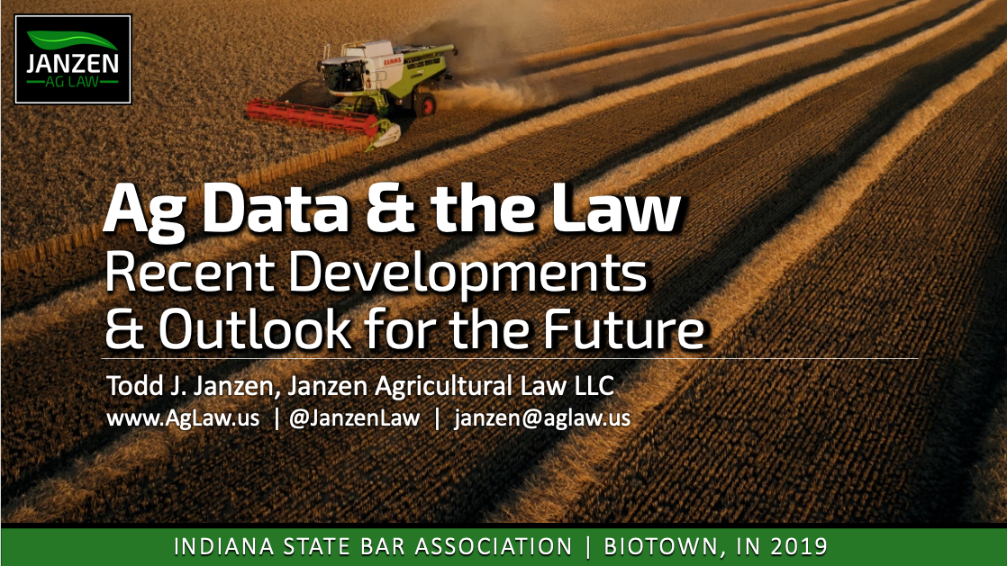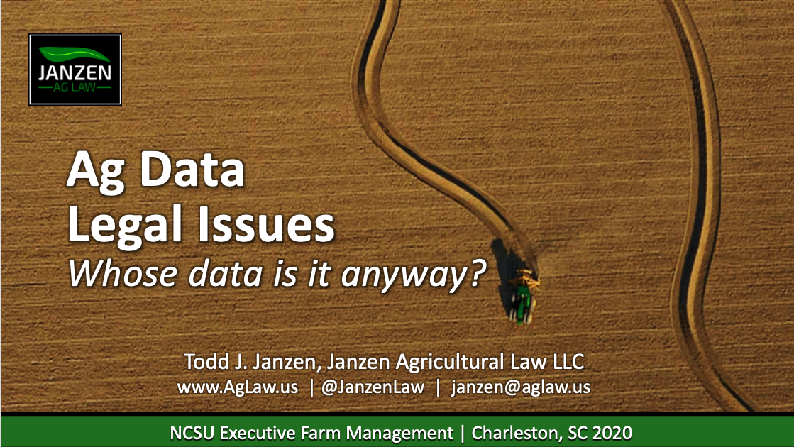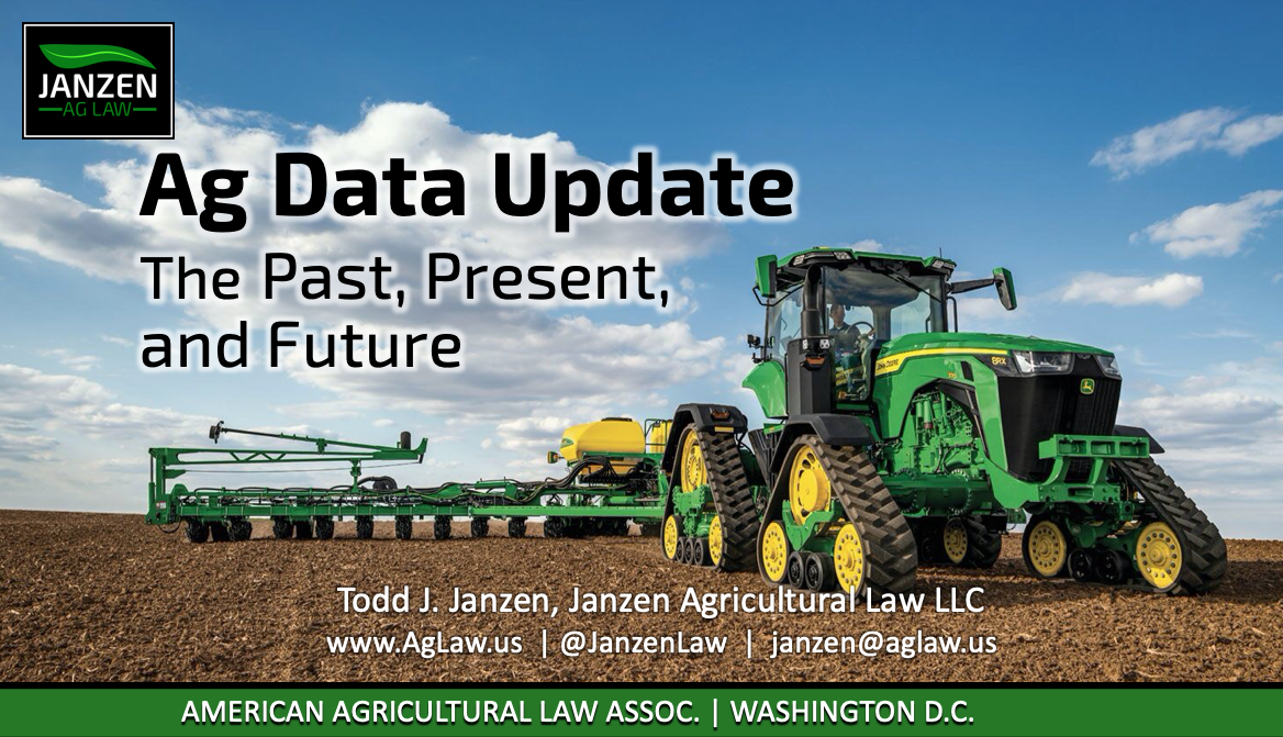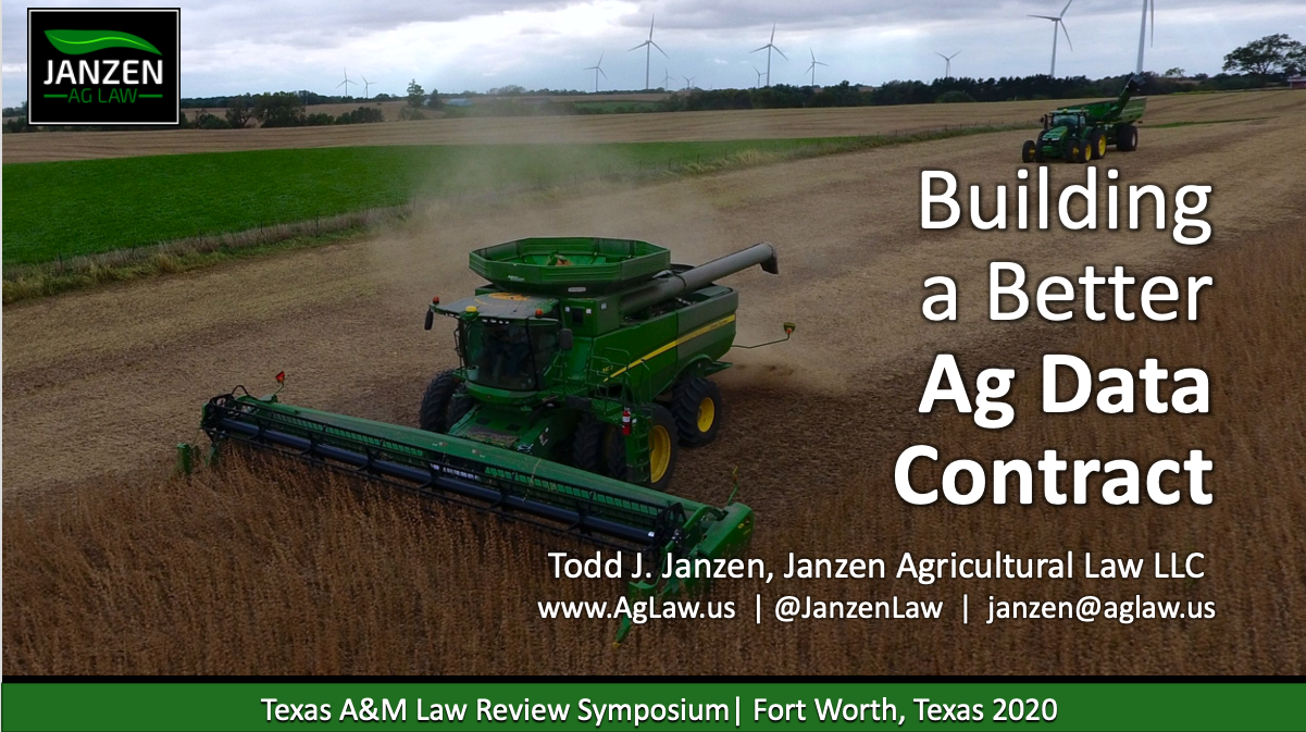 Todd Janzen is a frequent speaker on topics concerning agriculture, law, and technology. Below is a list of recent speaking engagements. If you would like Todd to speak to your organization, please complete the form below.